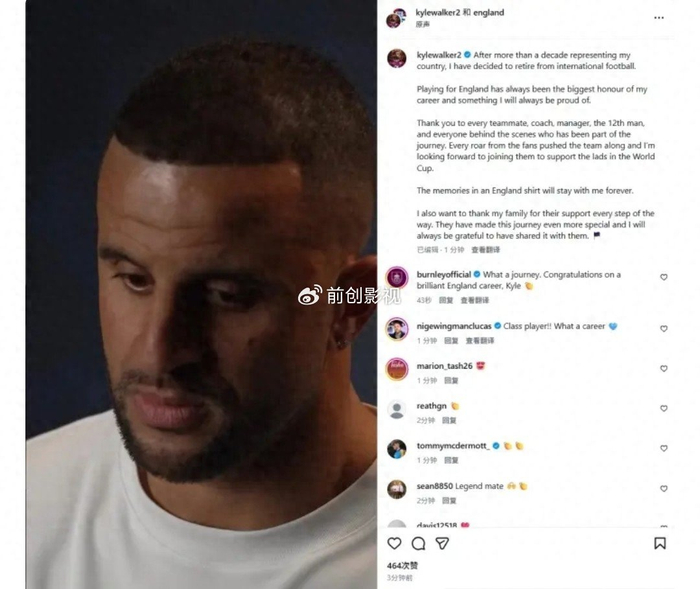 九游体育在线-体面谢幕!沃克官宣退出国家队,英格兰一代右后卫正式收官|世界杯|三狮军团|欧洲杯|英格兰足球队|美加墨世界杯_新浪体育_新浪新闻