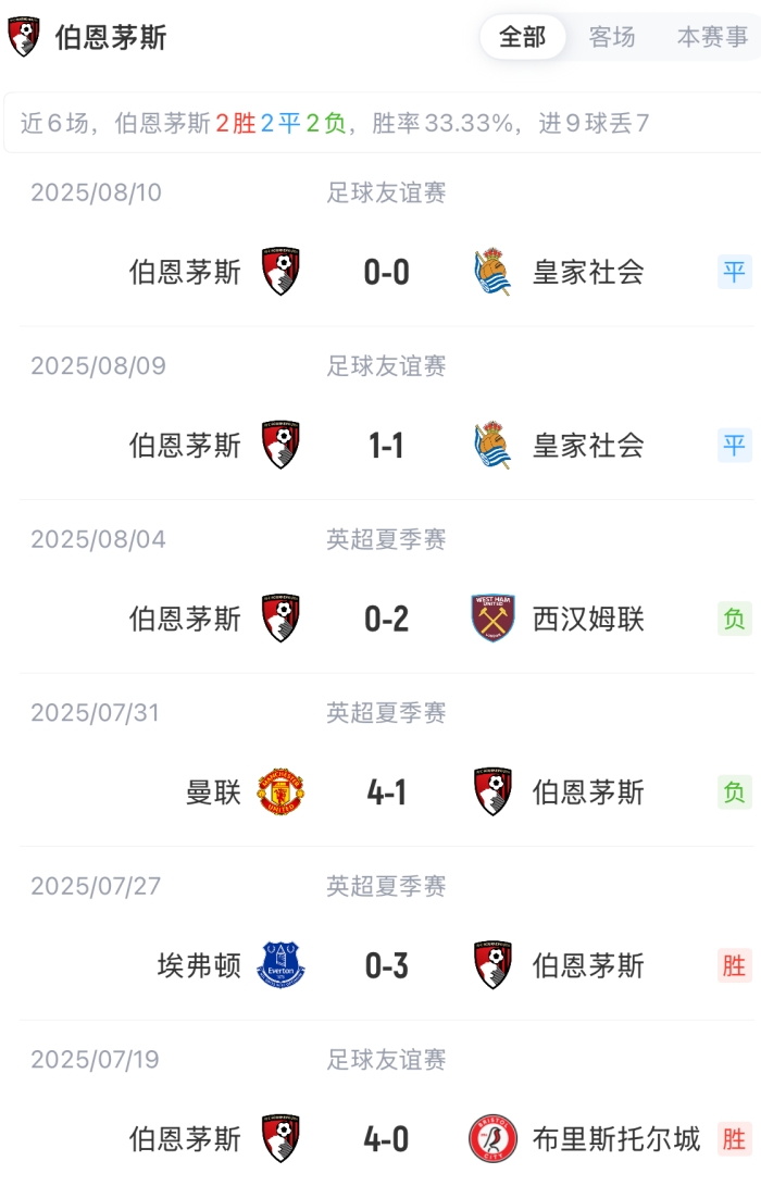 伯恩茅斯替补:40-丹尼斯、2-朱利安-阿劳霍、23-詹姆斯-希尔、20-索莱尔、29-比林、47-温特伯恩、25-H-特拉奥雷、22-克鲁皮、50-多廷